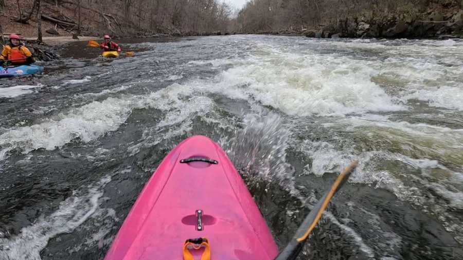 I’m planning a run on the Tariffville section of the Farmington River this Saturday, April 18. This is a short but fun stretch with a mix of quick-moving current, wave trains, and a few technical spots to keep things interesting.