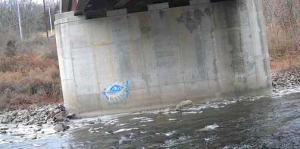 Pillars holds wood so run cautiously or scout. Skilled paddlers who know the river can boat scout, bumping down the right side and hitting the eddies on the right of this picture above the far right pillars. If unfamiliar with the river or uncertain of your skills, scout river right pulling out at the top above the island. (Of course that goes for any drop on any river…if you can’t see what’s at the bottom, don’t leave the eddy).